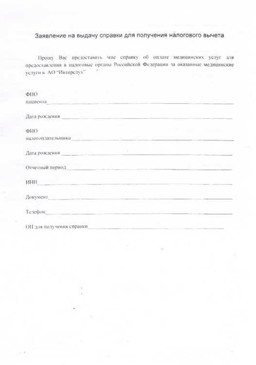 Заявление на выдачу справки для получения налогового вычета