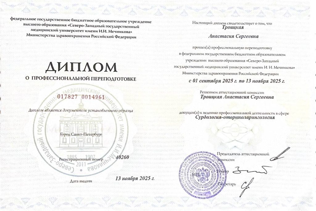 Должность: врач оториноларинголог-сурдолог -сурдолог